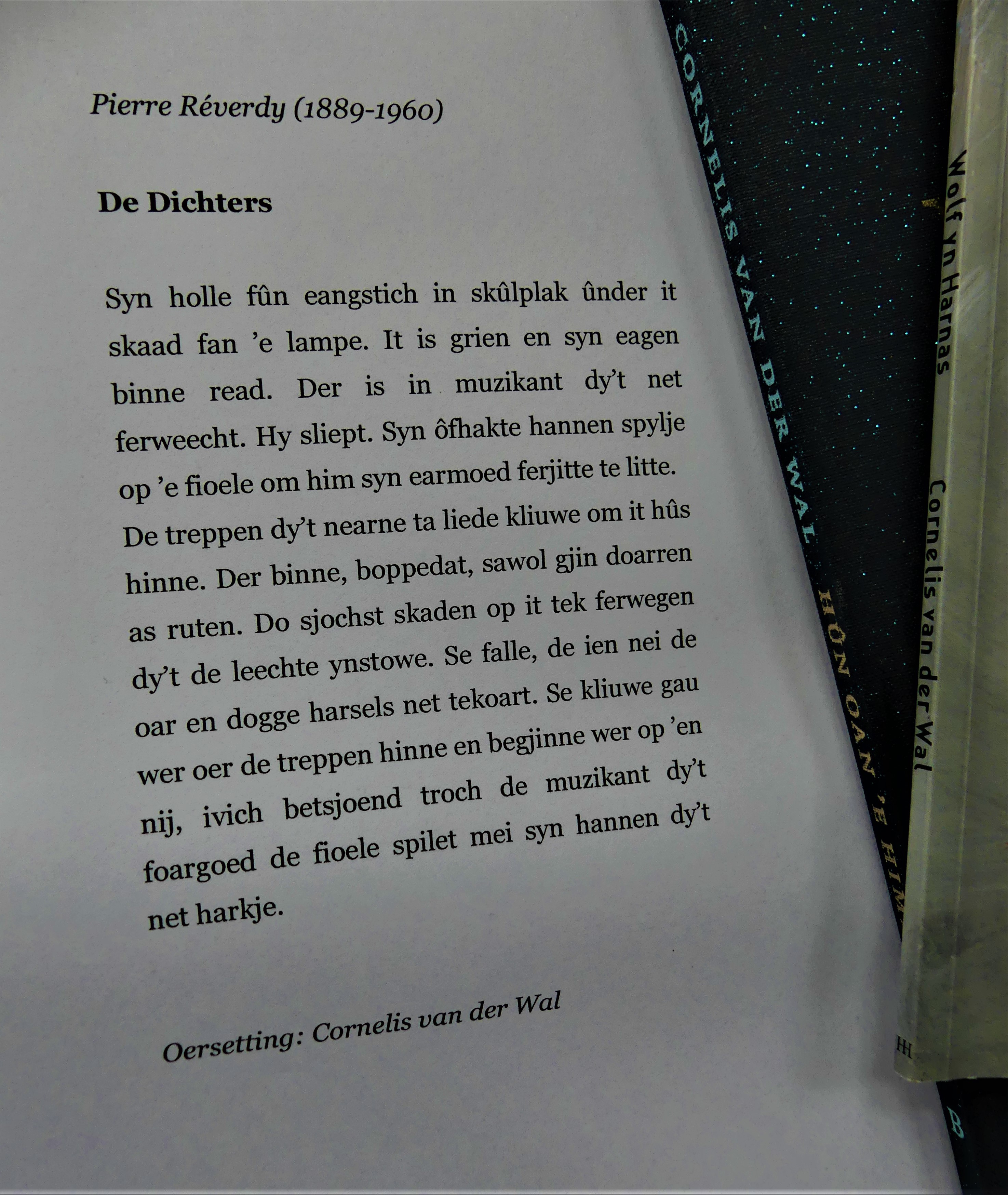 Cornelis van der Wal lies fjouwer oersette proazagedichten foar fan Rimbaud, Baudelaire en Revérdy. De lêste is minder bekend, hy moast bekenne dat er Revérdy sels ek net earder koe as no. Van der Wal hie de fersen treflik oersetten en de justjes rauwe fersen akkordearren perfekt mei syn Walliaanske foardracht.