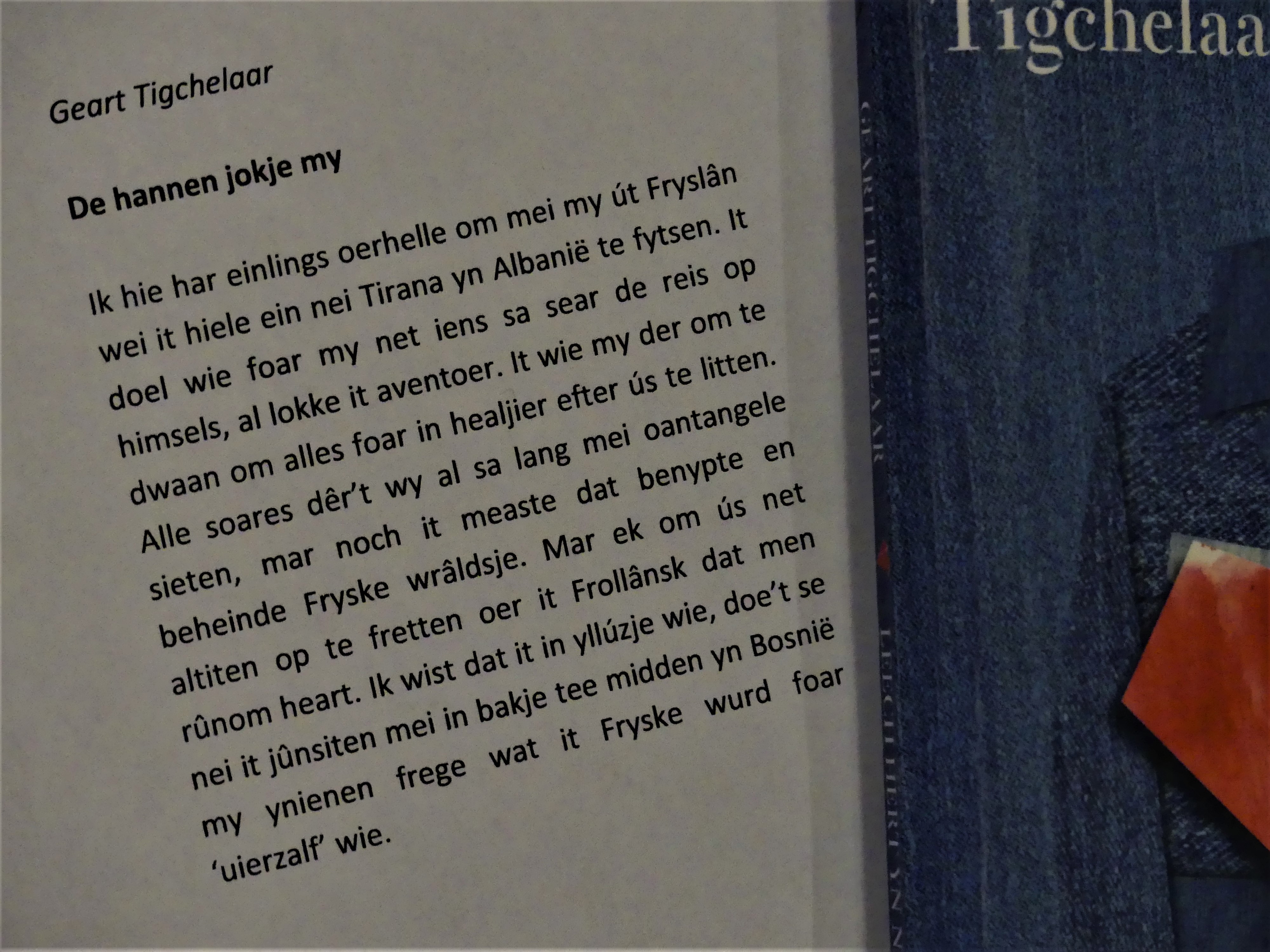 Tigchelaar begûn de jûn mei de fraach oan it publyk oft hja wol wisten wat no eins in proazagedicht wie. Der gie skruten in fingerke as twa omheech. Hy hope dêrom dat de minsken oan ’e ein fan de jûn wizer wêze soenen.