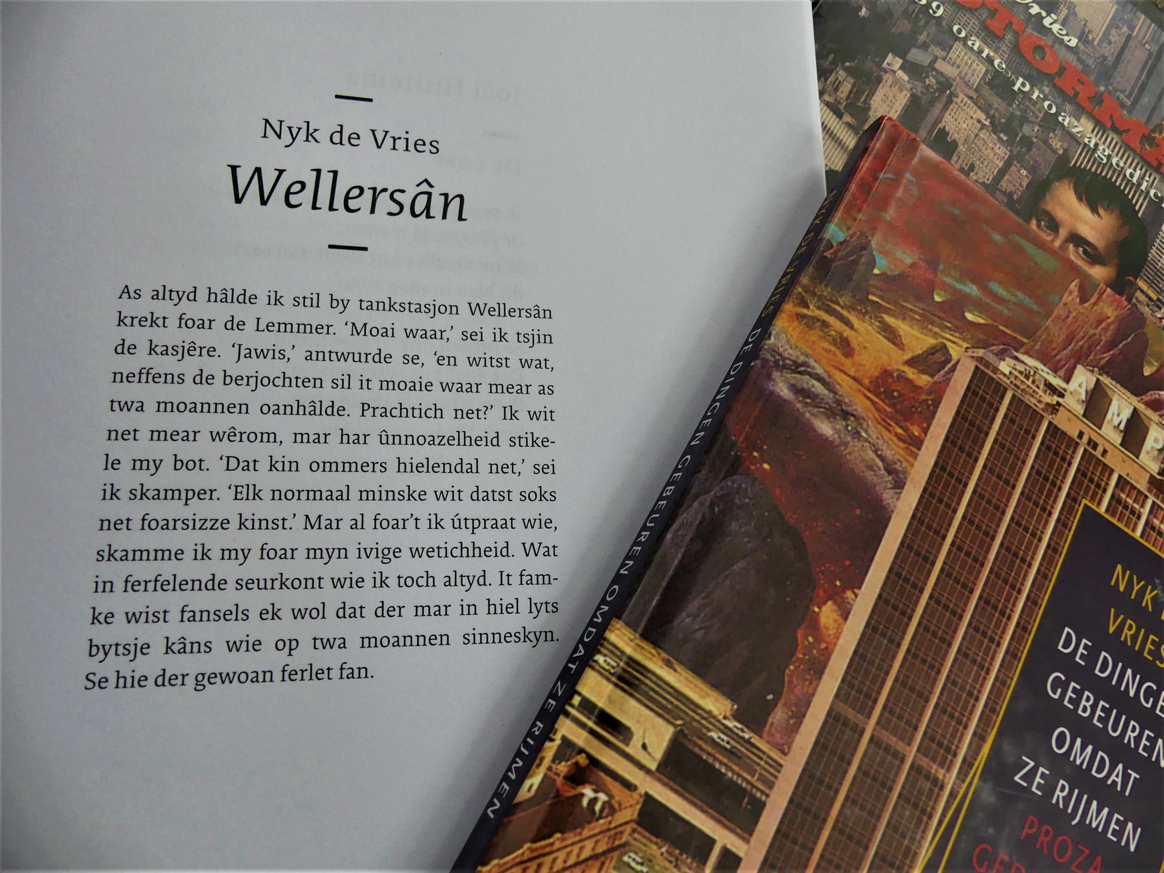 De Vries hie alle tiid om ôfwikseljend mei muzyk en byld syn proazagedichten foar te dragen. Dat wie sa in mear multymediaal optreden en wie net allinnich goed, mar joech de jûn ek fariaasje.