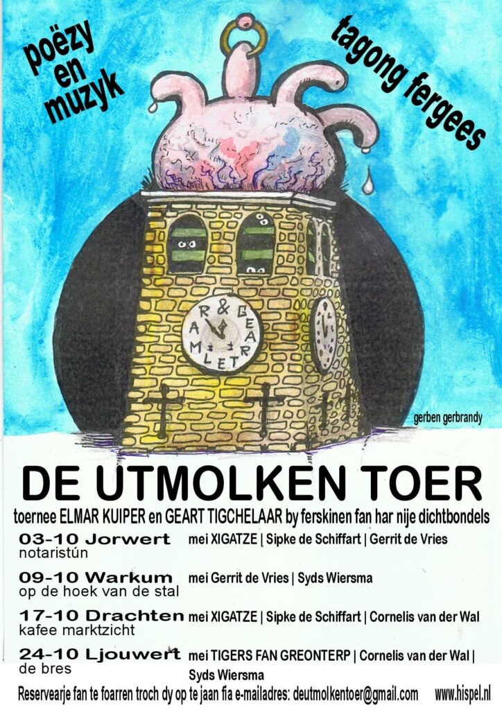 De Utmolken Toer stiet garant foar in bûnte milkshake oan poëzy en muzyk. Kuiper en Tigchelaar hawwe fan harren sels al in unike smaak yn de Fryske literatuer, mar de optredens wurde mjukse mei gastdichters Cornelis van der Wal, Gerrit de Vries, Syds Wiersma en Sipke de Schiffart. De bands Xigatze en Tigers fan Greonterp skomje de poëtyske iismolke ekstra op.