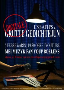 Frysk literêr tydskrift Ensafh organisearret wer syn jierlikse Grutte Gedichtejûn. It is lykwols ditkear gjin poëzymaraton yn in smûk kafee, it barren sil folslein digitaal wêze en giet freedtejûn 5 febrewaris om 19:30 oere yn premjêre. De poëzyjûn wurdt nammentlik op it YouTube-kanaal fan Ensafh útstjoerd.
