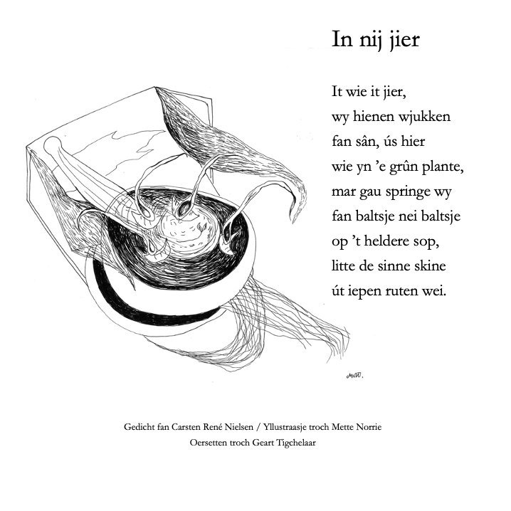 Dichterskollektyf RIXT winsket elkenien mei in fers fan Carsten René Nielsen en oersetten troch Geart Tigchelaar in sûn en poëtysk 2021. De tekening is fan Mette Norrie.
