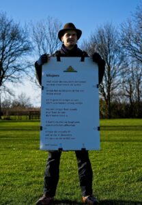 Tigchelaar sil as streekdichter de poëzij nei de minsken bringe, letterlik, wannear’t er mei gedichten de merk op sil. De minsken krigen hjoed sa syn earste gedicht as streekdichter te sjen. Klisjees is skreaun nei oanlieding fan it tema ‘Samen’ fan de poëzywike.