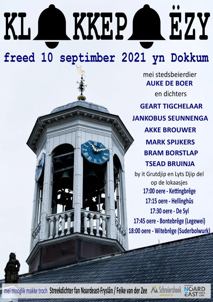 Op 10 septimber om 17:00 oere jout de Streekdichter fan Noardeast-Fryslân, Geart Tigchelaar, mei syn foargongers in poëzykonsert yn ’e binnenstêd fan Dokkum. De kariljonmuzyk wurdt fersoarge troch stedsbeierdier Auke de Boer.