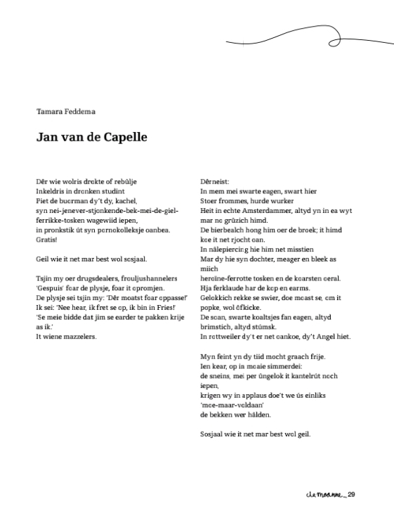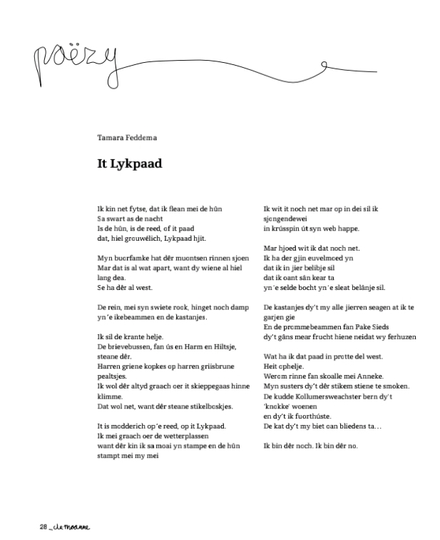 Hjirûnder twa gedichten fan Tamara yn De Moanne.